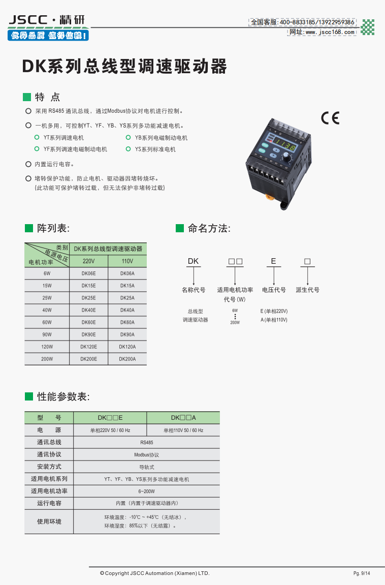 精研電機始終秉承“精益求精,研發創新”的理念為客戶提供優質可靠的產品。 DK系列總線型驅動器誕生于“高效”“全能”的概念,“全能”意味著您只需要一臺DK系列驅動器,即可適用6-200W全系列微型電機。“高效”代表著DK系列使用的通訊協議,自最開始的RS-485,Modbus,到現在的CC-CAN協議,只需要一根總線,即可同時控制大量的調速器,省去接線麻煩