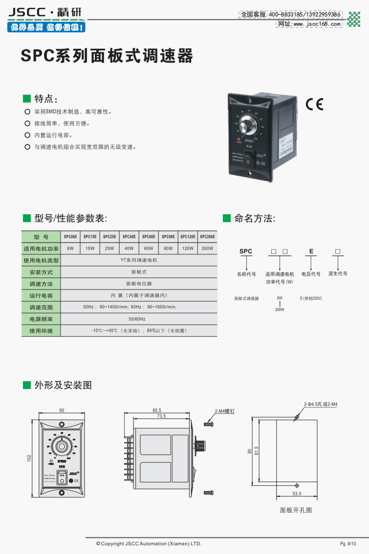 精研電機始終秉承“精益求精,研發創新”的理念為客戶提供優質可靠的產品。 SPC系列調速器是最基礎的調速器之一,采用電位器調速,簡單便捷,不需要任何設定接線運行即可使用。 提示SPC系列需要搭配我司YT系列調速電機使用,在選購本產品時請注意。